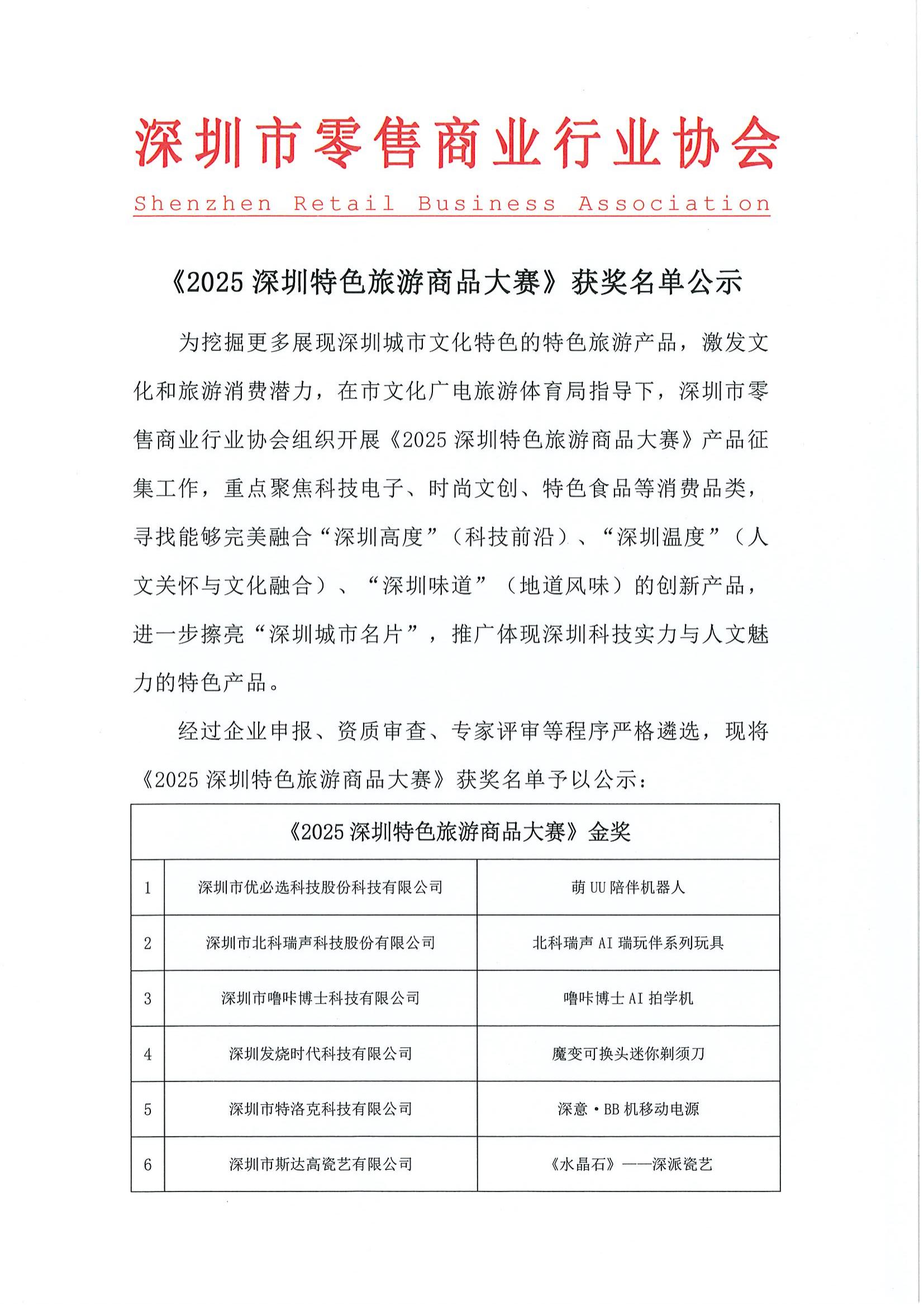 《2025深圳特色旅游商品大賽》獲獎名單公示