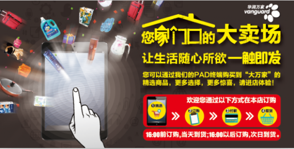 店里的大屏PAD,?注明了詳細(xì)的操作步驟,杜小姐粗略察看了下興奮的發(fā)現(xiàn)晚上聚會的商品PAD上都有:紅酒、牛扒、凍海產(chǎn)、蝦、調(diào)味品、車?yán)遄舆M(jìn)口水果……輸入手機(jī)號碼確認(rèn)了配送方式和發(fā)票信息后提交訂單,如此簡單!一切搞掂,整個選購過程用了不到10分鐘,門店收銀員還告訴杜小姐,華潤萬家有專業(yè)的物流配送團(tuán)隊(duì),將會在2-3小時內(nèi)將所有貨品送達(dá),看看時間,杜小姐開心地回去陪小寶貝練琴去了。