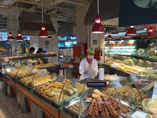 此外,面包和熟食區(qū)有部分市民在購(gòu)買。正在排隊(duì)購(gòu)買炒飯的張先生,在家樂(lè)福福田中心城店附近的寫(xiě)字樓工作,他說(shuō),臺(tái)風(fēng)天寫(xiě)字樓附近的小餐飲店都關(guān)門了,外賣也紛紛罷工了?!罢酶浇谐芯蛠?lái)買點(diǎn)炒飯、鹵菜湊合一頓,方便省事。