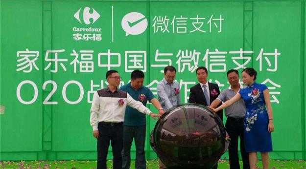 5月5日上午, “家樂福中國與微信支付O2O戰(zhàn)略合作發(fā)布會”在家樂福深圳保利店舉行。同時,家樂福在廣州、深圳的13家門店首批接入微信支付。