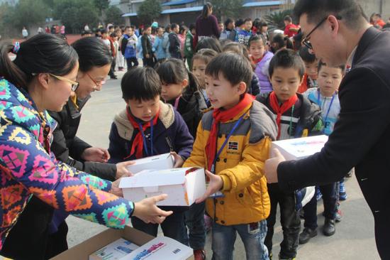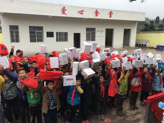 麥德龍安岳希望小學的孩子們在春節(jié)前收到了愛心盒